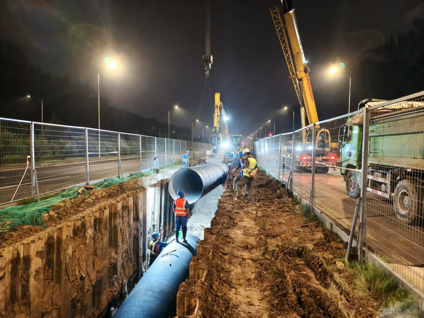 目前,水厂配套供水干线工程已建设完成,并于11月21日顺利完成与现状管线勾头任务,为下一步发挥水厂供水能力、有效保障区域供水压力做好了充分准备。