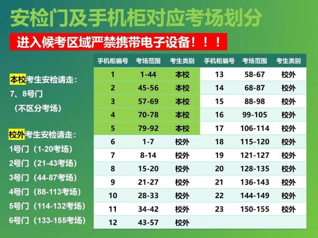 2.请考生进校后按照路标指引前往手机放置区,存取过程请考生排队有序进行。