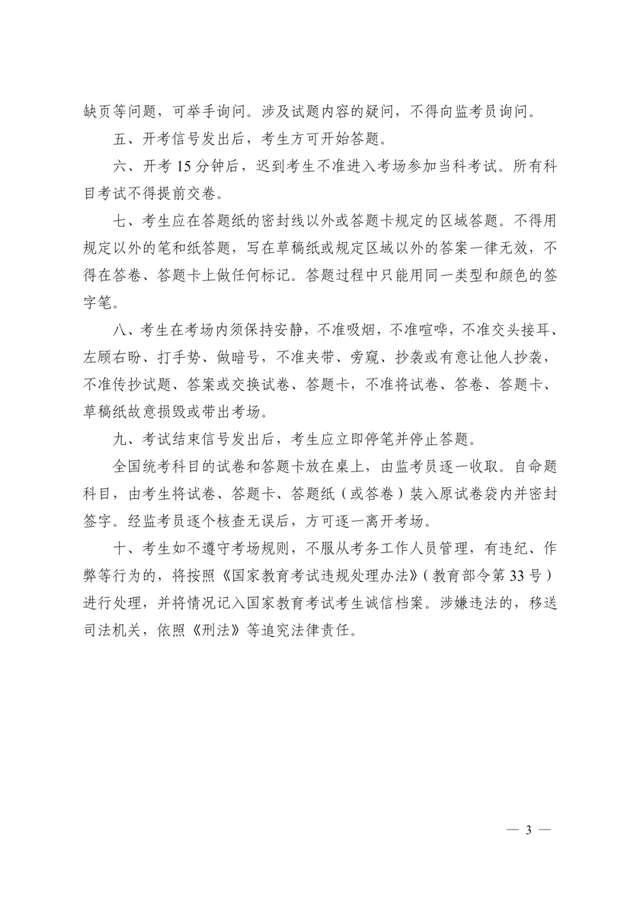 本考点全部考场均为标准化考场,监控及屏蔽系统考试期间将全部开启,考试时不得携带任何与考试无关的设备。试题、答题卡、草稿纸等均属于涉考材料,不允许以任何形式拍照传出或带离考场。对考生违反考试纪律和规定的行为,将根据《国家教育考试违规处理办法》(教育部令第33号)予以严肃处理,并记入国家教育考试考生诚信档案;对考生违法行为,将根据《中华人民共和国刑法》规定依法予以严惩。请广大考生珍惜个人名誉、遵守考试纪律、争当诚信公民。考场内所挂时钟显示时间仅供参考,考试开始与结束时间以考场指令为准。