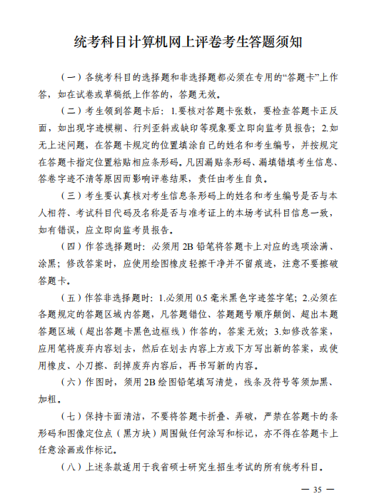 所有考生须认真阅读统考科目计算机网上评卷考生答题须知(见下图)。