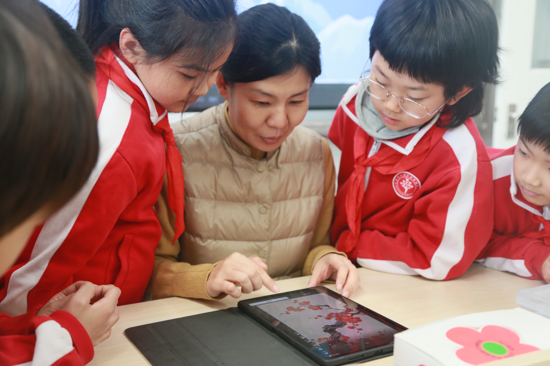 活动中,师生共同观看冬至消寒知识视频,了解冬至由来以及“画九”“写九”的传统习俗等,读懂古人“数九盼春”的生活智慧。师生还共同设计并通过人工智能生成了消寒主题图。