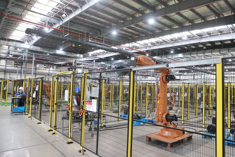 上海新时达机器人有限公司机器人测试区,机器人正在进行自动测试。受访者提供