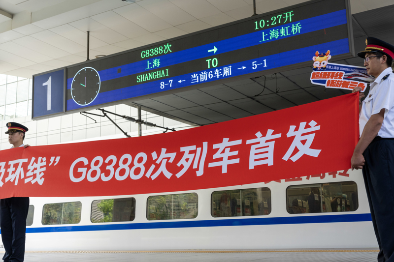 2024年6月15日,中国铁路上海局集团有限公司第三季度列车运行图正式实施。当日,长三角超级环线高铁列车迎来首发。解放日报记者孟雨涵摄