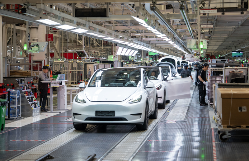 特斯拉上海超级工厂生产线。解放日报记者孟雨涵摄