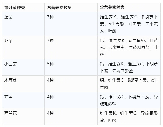 除了维生素C,绿叶菜还富含β胡萝卜素、α生育酚、叶黄素、玉米黄素,它们联合起来可以更好地抗氧化、抗炎。