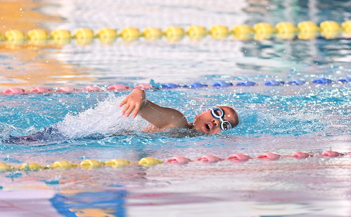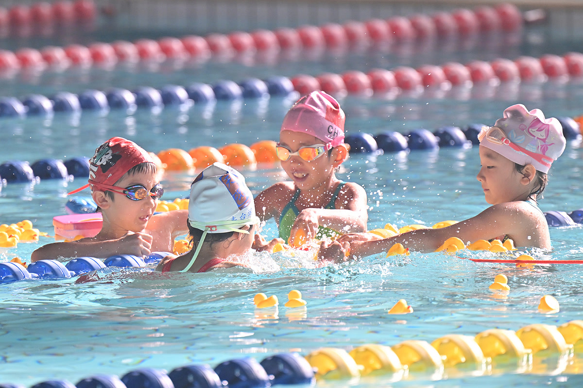 活动设置也超贴心,想挑战自我的,有50米蛙泳、自由泳的个人赛,按年龄分了9组,公平又科学;想一起嗨的,有“团结挑战”接力、“抓鸭子大作战”等团队趣味项目。大小朋友配合接力游泳圈,水中“抓鸭”笑声不断——原来游泳不仅可以拼速度,还能拼默契、拼创意!从5岁到69岁,人人都是主角。泳池里,孩子们扑腾着小胳膊小腿,眼神专注;青年人挥洒汗水,速度拉满;银发族稳定前行,从容不迫。无论年龄,每个人都在水中找到自己的节奏,真正诠释了“全民健身,一个都不能少”。