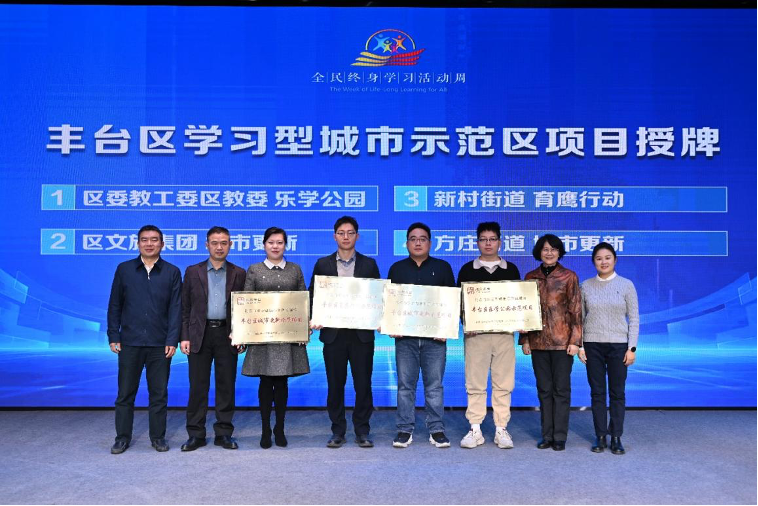 开幕式上,丰台区为“乐学公园”“长辛店老镇城市更新”“育鹰行动”“方庄街道城市更新”四大学习型城市示范区项目授牌。