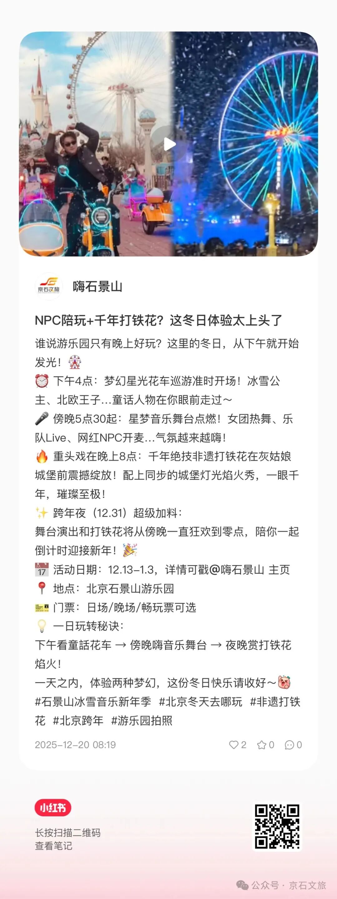 如果说微信公众号是咱们沉稳靠谱的“资讯官”,那小红书「嗨石景山」就是我们活泼会玩的“体验官”!