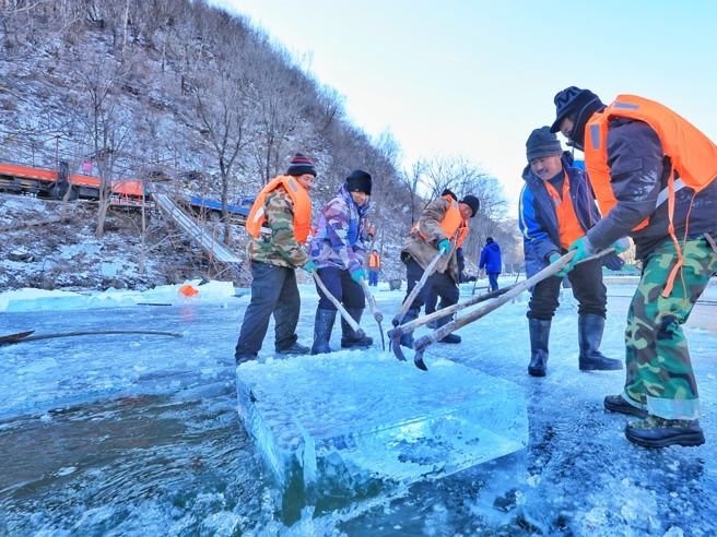 ▶ 龙庆峡冰灯艺术节启动采冰,晶莹冰面采出“头冰”