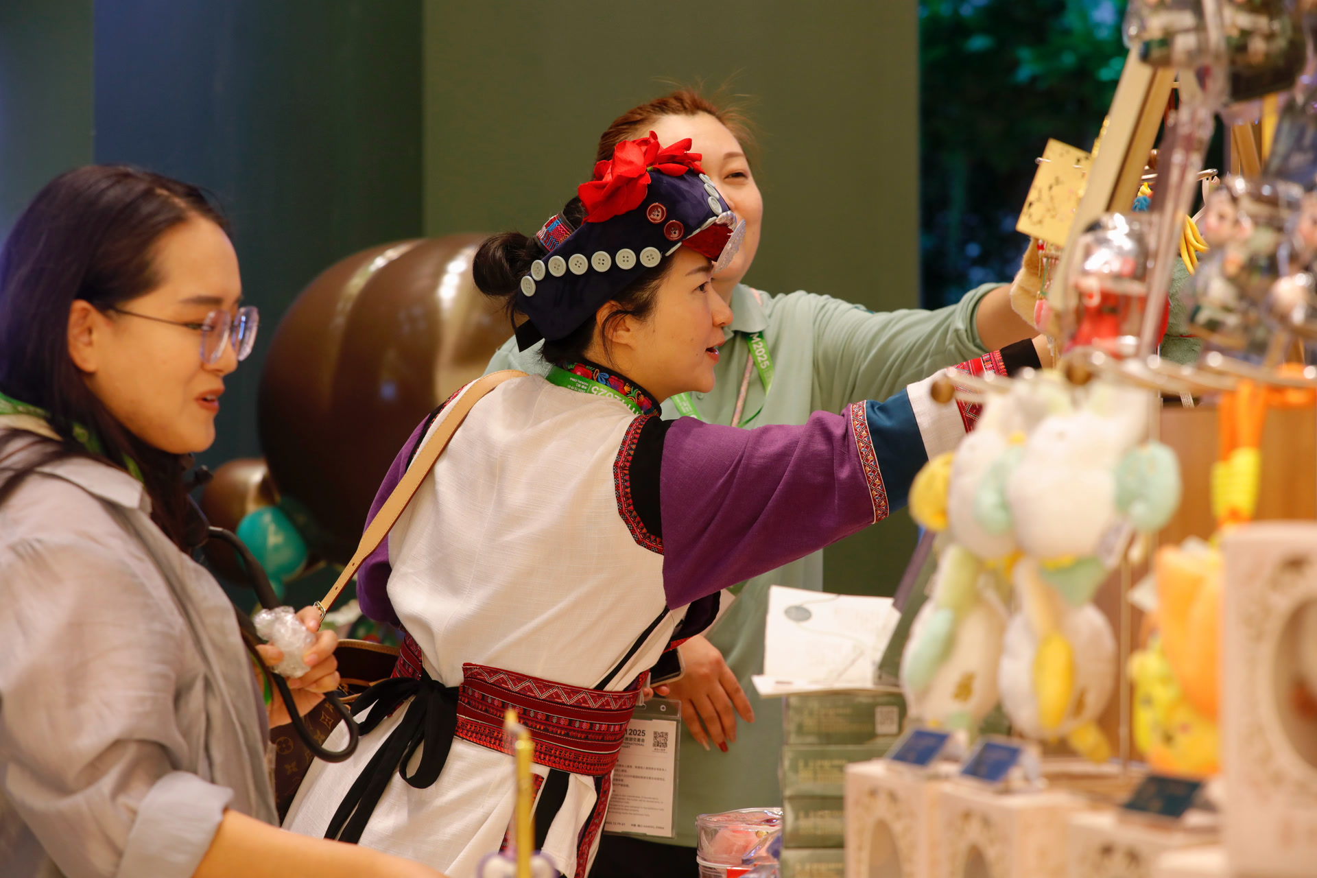12月19日至21日,在2025中国国际旅游交易会(海口)上,恭王府博物馆带来文具、手办及“恭小福食礼”系列食品等文创产品。
