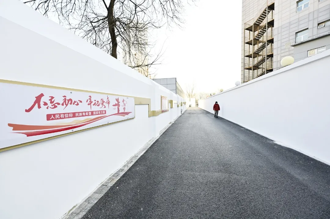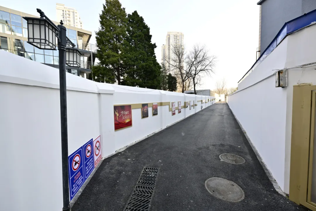 如今,走在改造后的小巷里,沥青路面平整宽阔,脚感舒适。两侧墙体上,“墙上的时光剧场”格外亮眼——由老厂房图案、居民生活老照片组成的壁画,搭配暗藏在文化宣传栏里的线性灯带,白天是承载记忆的“文化长廊”,夜晚则亮起柔和灯光,既化解了空间局促感,又照亮了居民夜间出行路。