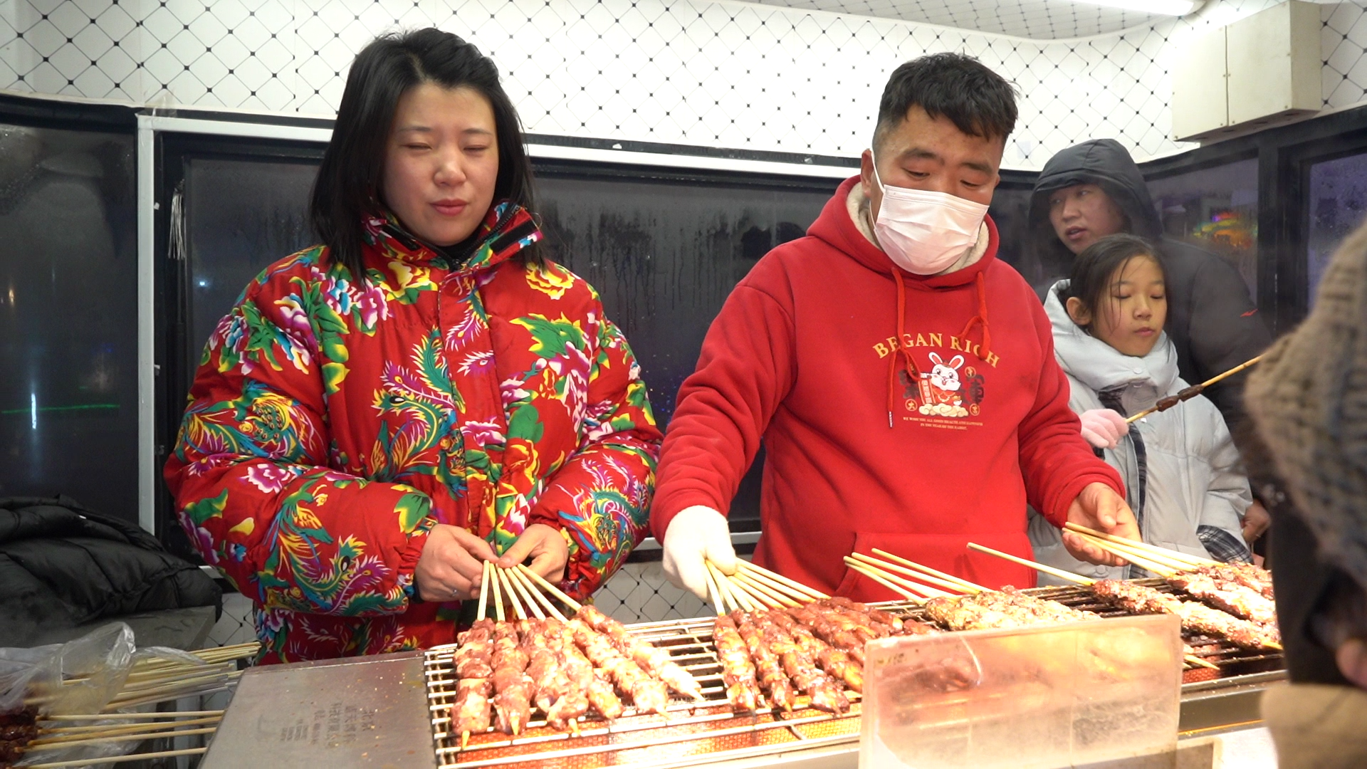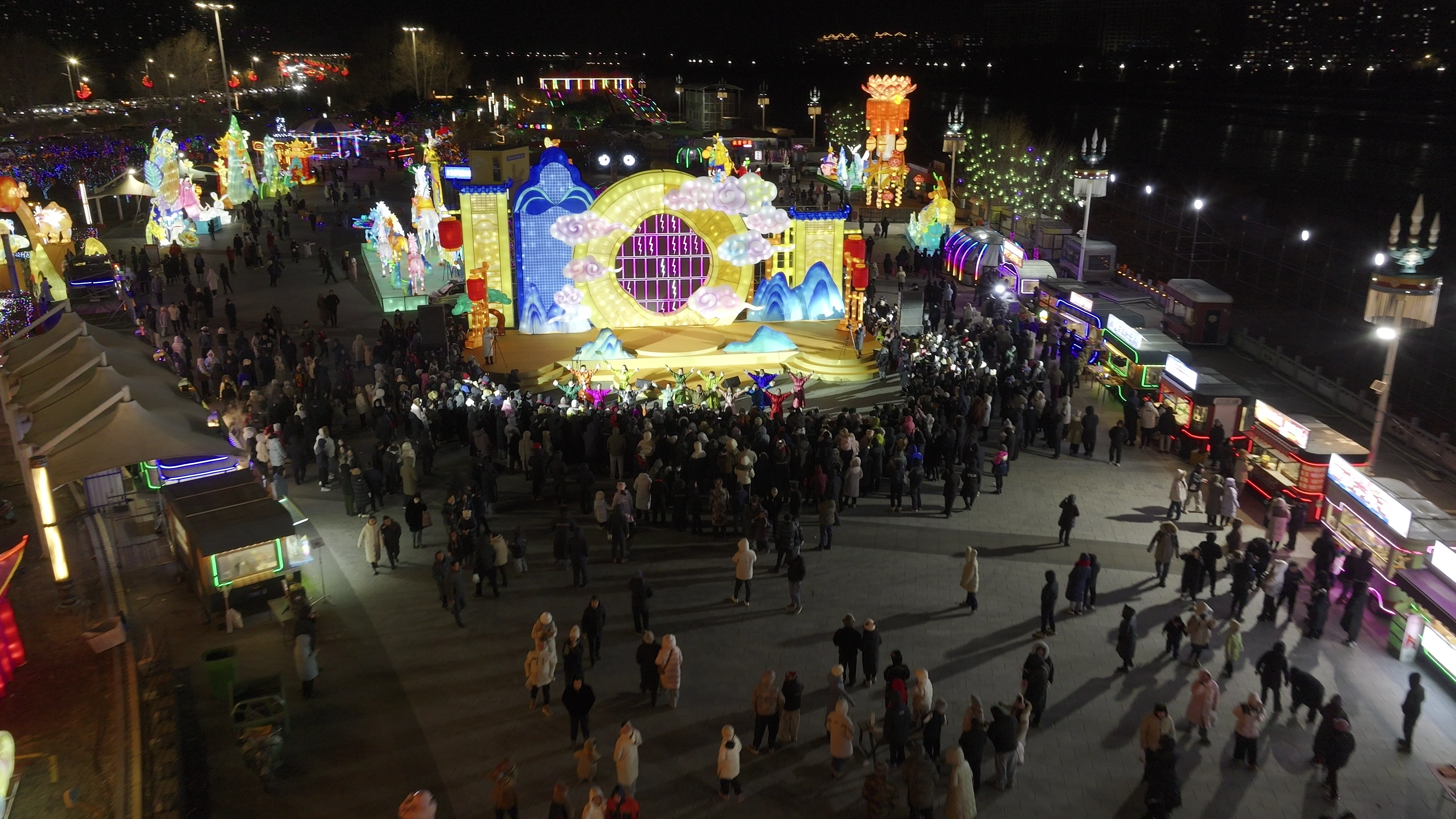 除了赏灯环节,灯会还打造了多元化功能区,将“赏灯+年俗+娱乐+消费”深度融合,构建沉浸式、体验式、互动式的新式灯会场景。舞台演艺区持续带来精彩演出,特色美食街汇聚热饮、涮串、烤冷面、手抓饼、关东煮等特色小吃,还有东北铁锅炖等暖心美食暖胃又暖身。年货大集上,大米、对联、冻货、冻梨、冻柿子、海鲜水产等商品琳琅满目,手工装饰、儿童玩具等年货一应俱全,满足群众采购需求。XR体验馆、泡泡取暖屋、套圈等娱乐项目同步开放,拍照打卡点位遍布园区,让不同年龄段的游客都能找到乐趣,实现“尝到美味、感受温暖、选购年货、尽兴游玩”的一站式体验。