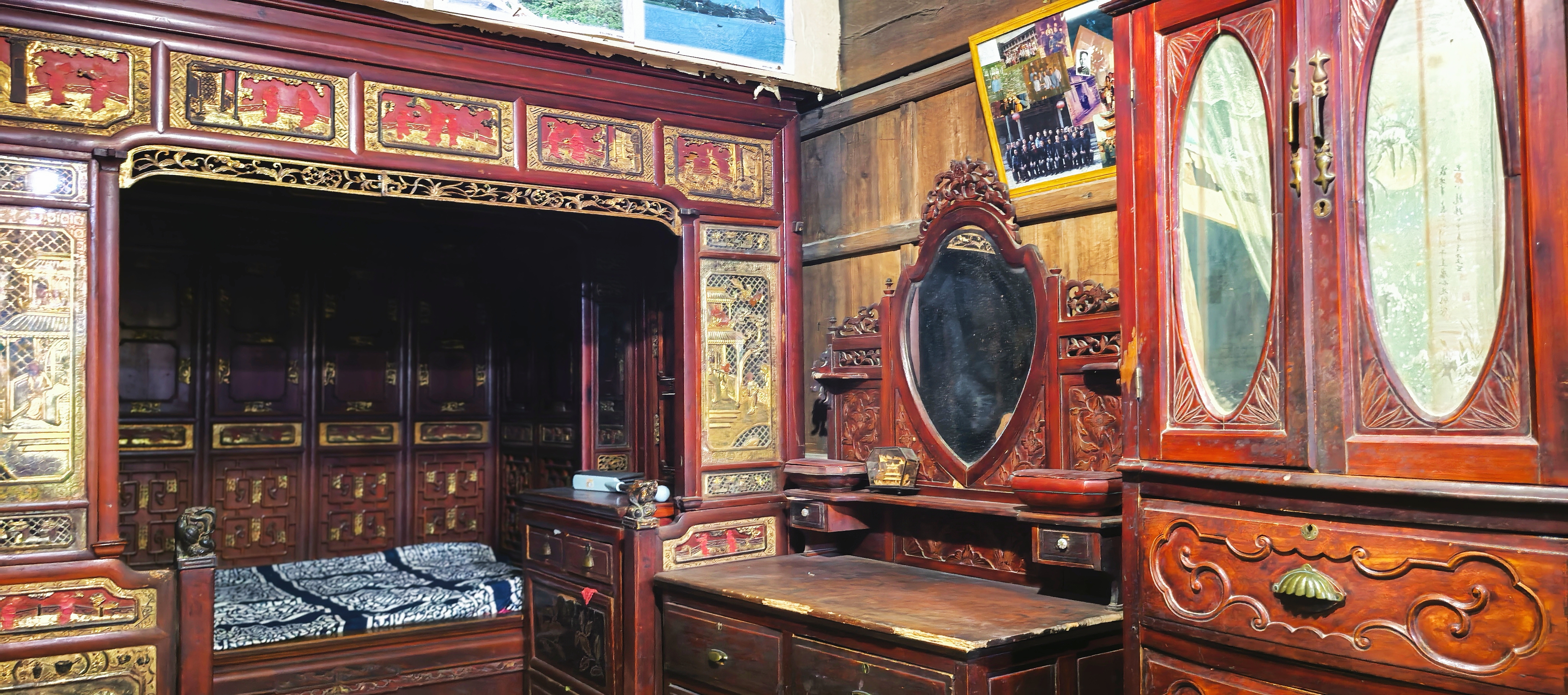 将军屋亦是村中一景,作为国民党少将陈毓秀的故居,这座三合院式建筑豪华气派,镂空雕花格窗、重檐悬山屋顶处处彰显匠心,在屋中见到陈将军的弟媳周夫人,老人滔滔不绝地讲起曾经的过往和家中的宝贝,直到我们起身离去,她还意犹未尽。