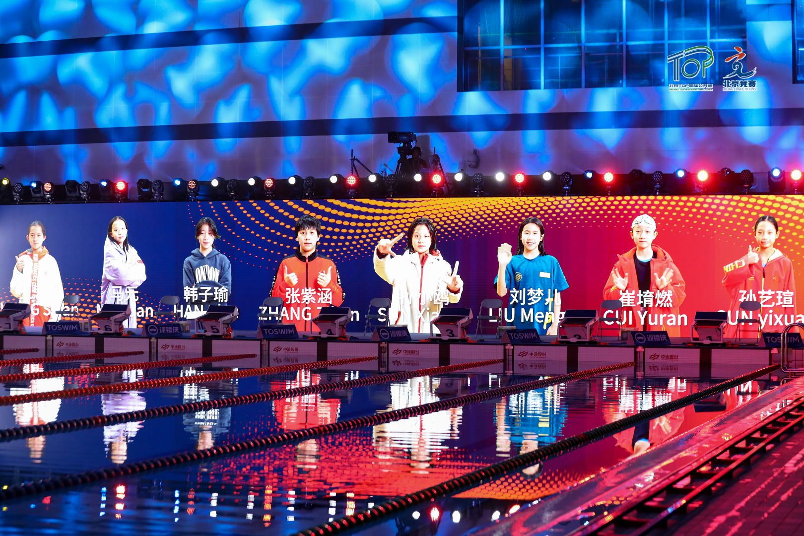 北京日报客户端记者在现场看到,本次比赛决赛场次在运动员出场时特别在现场大屏幕播放了他们的专属动画,赛后也安排了现场采访环节,让他们有了站上世界级赛事舞台的仪式感。本次赛事的现场体育展示团队具备多项世界泳联赛事体展经验,用精心编排的灯光、音乐与视觉效果,营造沉浸式的赛场氛围。此外,组委会还为所有参赛泳者精心准备了一份满载诚意与关怀的“TOP尊享参赛包”,内含定制防水束口包,赛事限定版T恤、棒球帽、徽章、防滑拖鞋以及洗浴用品、干发帽、浴巾等10余件物品,让选手们感受国际级赛事的专业体验与温暖礼遇。