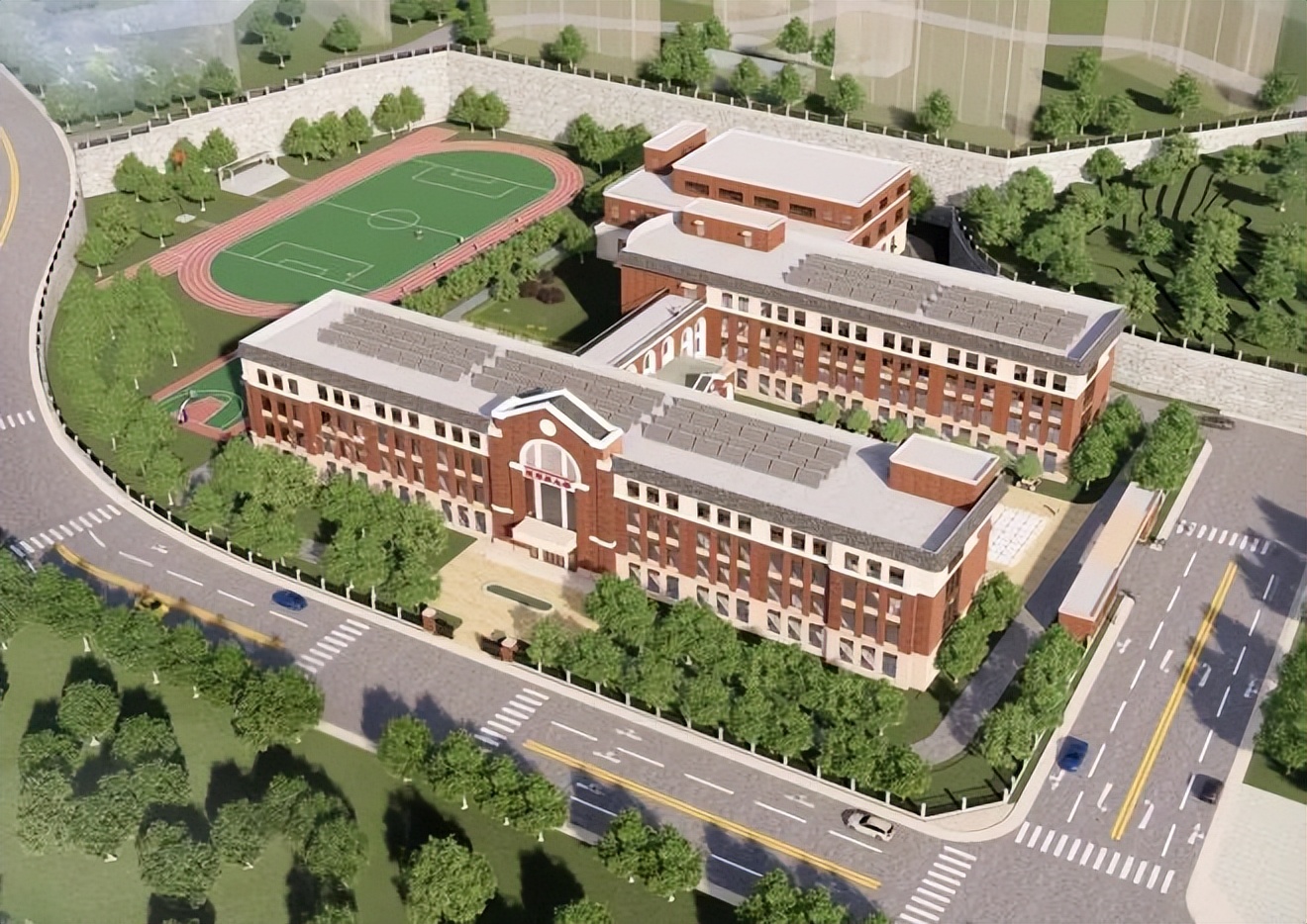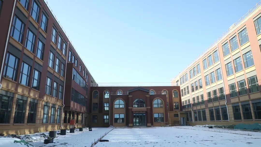 记者在施工现场看到,学校的教学楼呈H形,红棕与暖黄相间的外立面色彩分明,庄重中透着童趣,教室宽敞明亮,一座功能齐全、设计灵动的智慧新校园已呼之欲出。工人们分布在各个楼层,安装窗户、楼梯护栏等基础设施,到处都是紧张有序的作业场景。