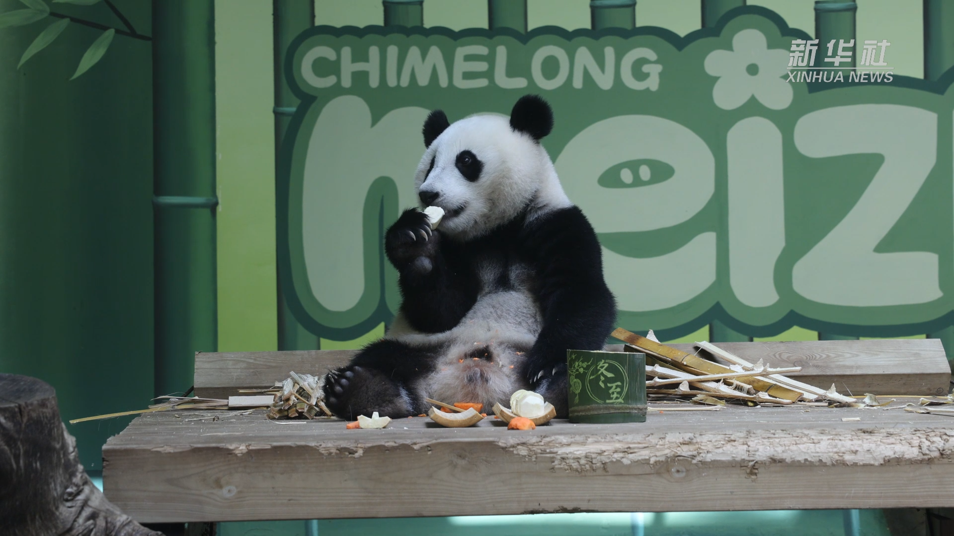 冬至节气,在广州,长隆野生动物世界为全球唯一大熊猫三胞胎的后代“妹珠”精心准备了冬至传统美食。保育员用竹笋和胡萝卜,雕刻出可爱的汤圆和饺子,让“妹珠”在冬至仪式感拉满。