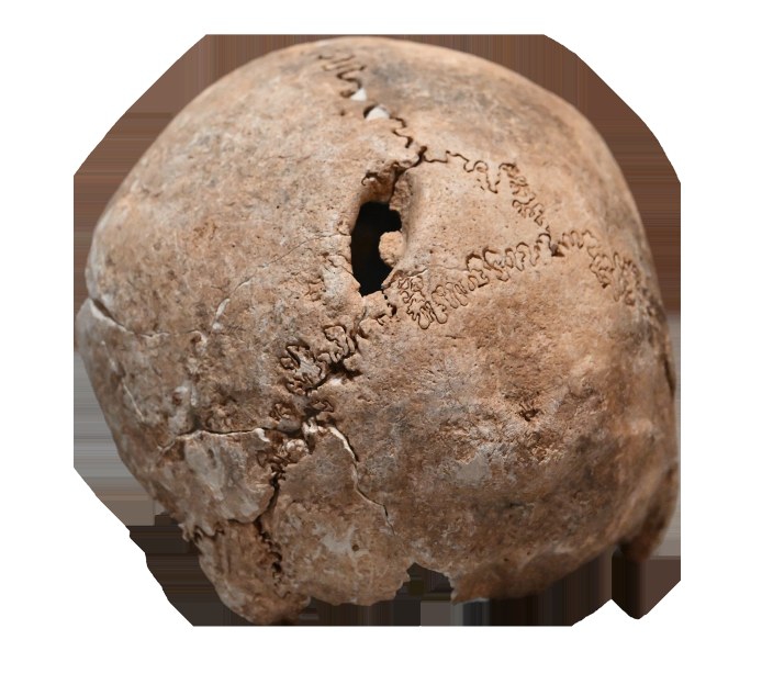 儒家典籍、玉器、编钟、屏风等反映丰富精神世界的文物,也在海昏侯墓中占有不小的比重,可见当时海昏侯国不仅拥有强盛的经济实力,还体现了精英文化。相对之下路县故城出土的文物,更多展现了手工业的繁荣,本馆基本陈列中还通过出土的文物还原了一处当时路县手工业繁荣的场景。铁六角形釭(音同刚)说明当时路县应该出现了制造和维护车辆的工匠;一枚铁钩则说明当时这里的水网比较发达,人们会进行渔猎活动;庖厨陶俑的出现则说明当时已有厨师行业。“遗址中还出土了一颗女性的头盖骨,上面有椭圆形的孔洞,根据周边骨头愈合情况推测,这位女性在生前应该经历了一场开颅手术,这也是北京地区最早的开颅手术。”王雪说。