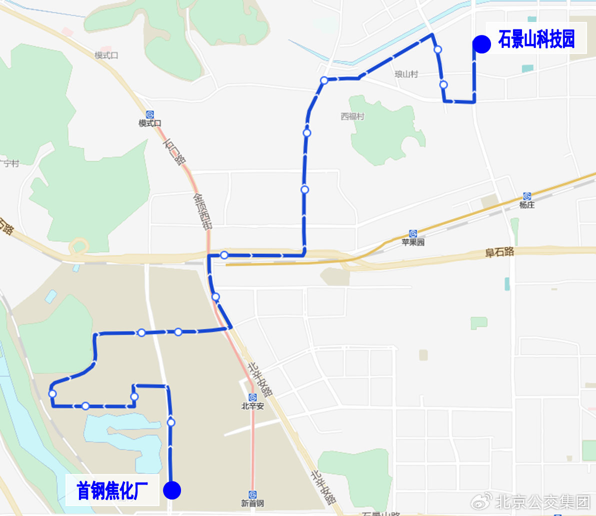 调整后首末站:首钢焦化厂-石景山科技园