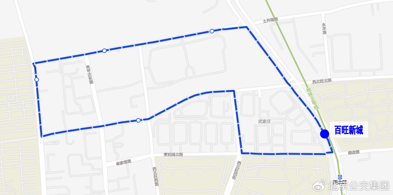 沿途设站:百旺新城、西北旺北路、颐和山庄、永靓家园北、赵家庄南、百旺新城。