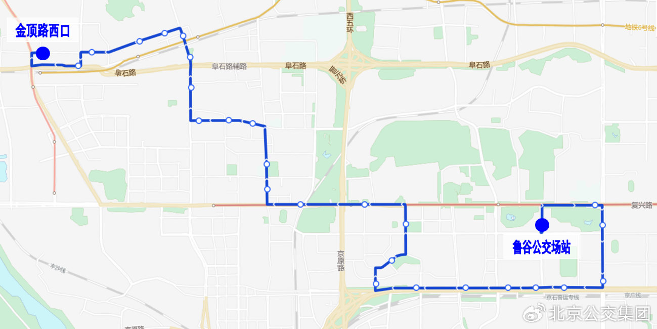 调整后首末站:鲁谷公交场站-金顶路西口