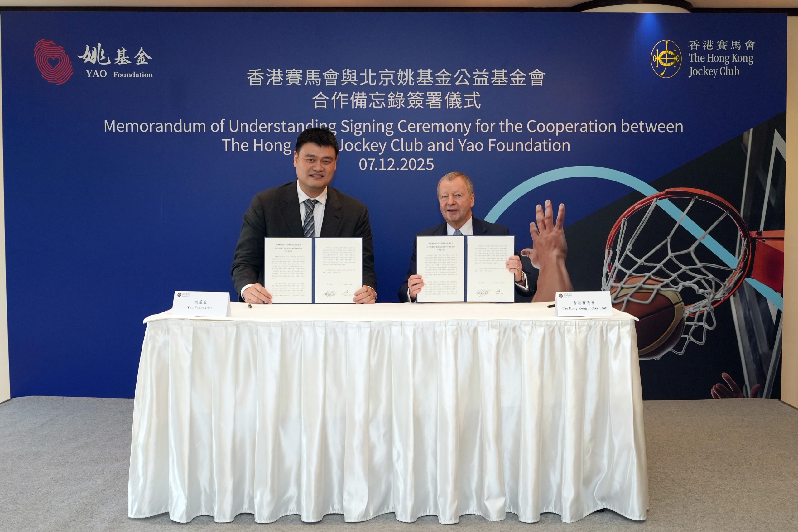 合作备忘录签署仪式在赛马会沙田会所举行,姚基金理事长姚明及香港赛马会行政总裁应家柏代表双方签署合作备忘录。根据备忘录,双方将携手探索合作项目及交流活动,加强推广篮球运动及青年体育发展。