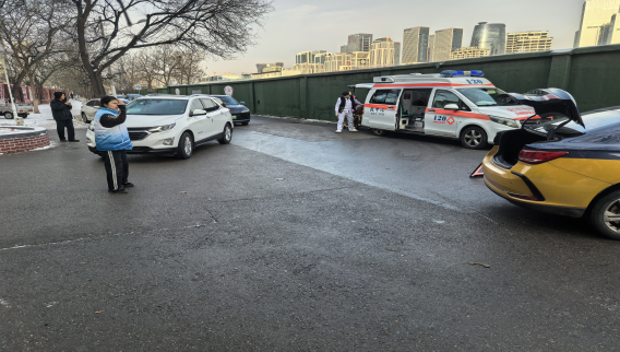 工作人员分工合作、有序开展救援:刘玉欢负责引导事故后方车辆有序绕行,防止交通进一步拥堵;曹雪梅在事故区域设置简易路障,保护伤者免受二次伤害;陈淑红和高迪负责安抚事故双方情绪,并及时疏散围观群众,维持现场秩序。社区党委还协调小区保安前往最近的道路岔口,向车主解释情况并引导他们绕路通行,有效避免了道路拥堵加剧。数分钟内,一条安全通道清出,二次事故风险得以排除。