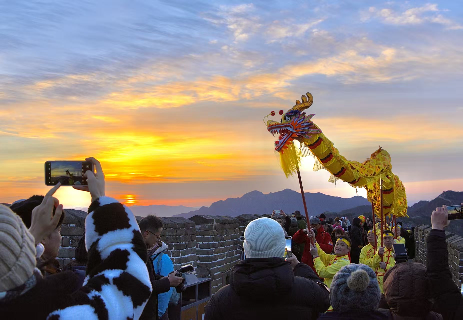 元旦当天,慕田峪长城景区将于清晨5时开放。在日出前,游客可观赏来自江苏无锡的残疾人“惊雷”龙舞队表演,该队将以龙舞展现“龙舞大地,圆梦长城”的主题。摄影师史宏伟将在现场为游客拍摄与日出、长城的合影,留存一份珍贵的新年影像记忆。此外,现场还有非遗舞龙舞狮、黄梅戏演出,游客可参与财神送福、光影打卡、涂鸦祈福等活动,并领取马年纪念品和免费热饮。