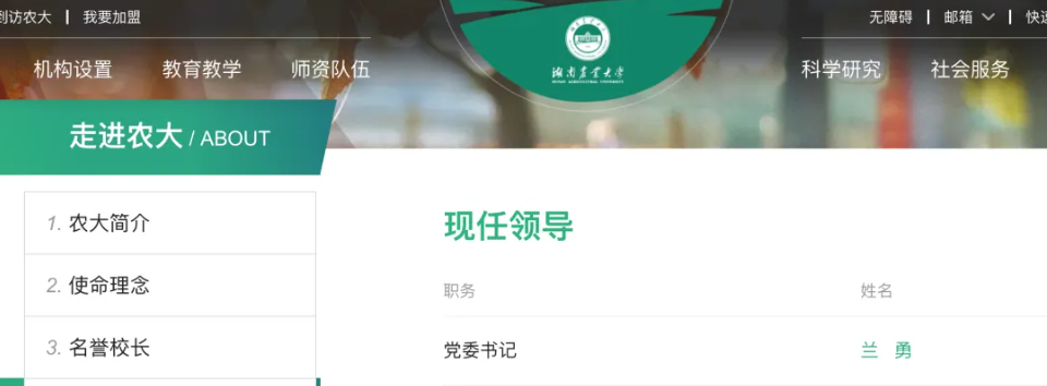 湖南农业大学官网截图。