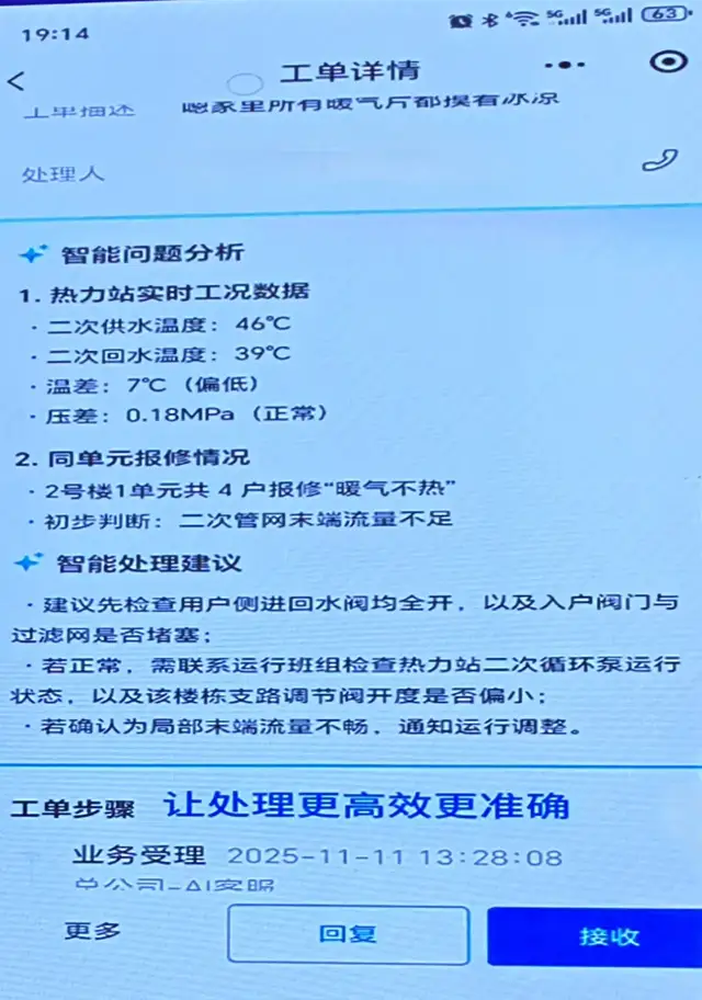 这些突破性创新在实际应用中展现出显著成效。在调度环节,该系统通过多时间尺度负荷预测和数字化仿真推演,实现全网热量需求的精准预判。实测数据显示,负荷预测准确率已达到90%,在确保“精准供热”的同时,有效实现“节能降耗”。在客户服务方面,智能客服系统可实现快速响应和工单自动派发,服务效率提升两倍以上,让“快速响应”成为新常态。在安全管理上,该系统实现设备隐患智能排查,治理效率提升50%,为城市供热安全提供有力保障。