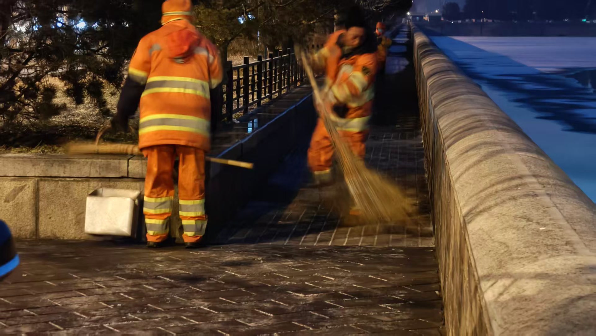 北京下雪了,环卫工人已早早上岗