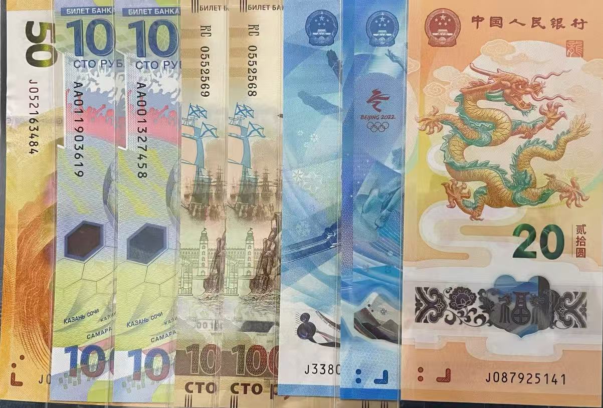 不过除了龙钞、冬奥纪念钞,以及50元面值的人民币发行70周年纪念钞外,那四张100面值的“大票”却十分眼生。记者搜索发现,它们其实都是俄罗斯卢布,其中两张为俄罗斯世界杯纪念钞,另两张是俄罗斯收回克里米亚半岛纪念钞。当年发行量均为2000万枚,属于比较多的,即便在收藏市场也并不亮眼,普通号码仅十几元。这样算来,该套装实际价值最多也就200元出头,还不到标价的一半。