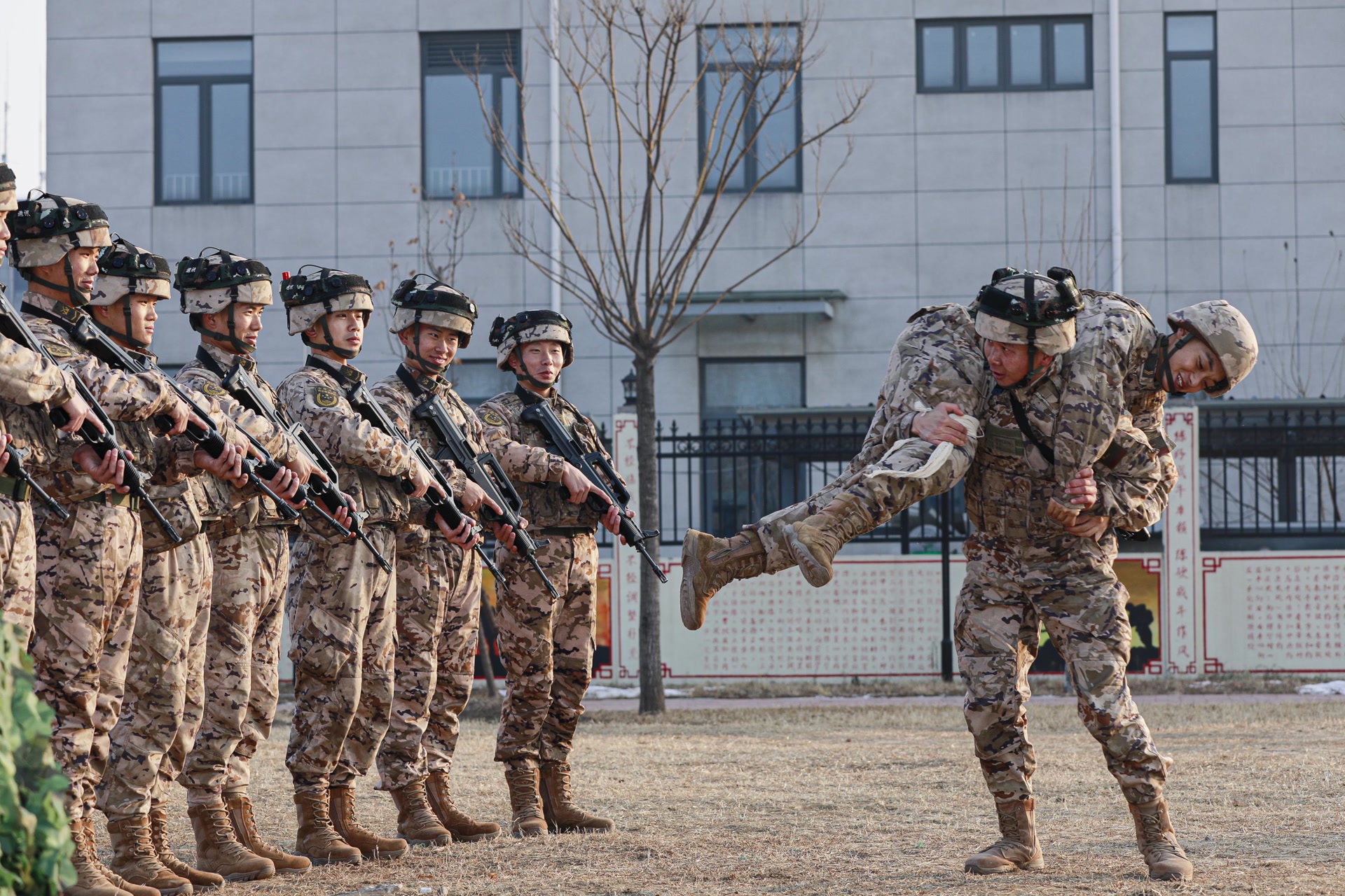 近日,武警北京总队执勤第十五支队,紧抓冬季训练黄金期,立足恶劣天候,严密组织应急棍术、擒敌拳、战场救护等多课目训练,全体参训官兵热血沸腾,在寒风中挥汗如雨,不断挑战极限,持续掀起实战化练兵热潮。