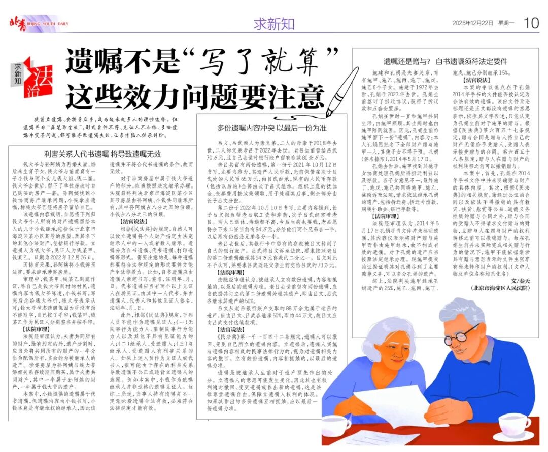 提前立遗嘱、安排身后事,成为越来越多人的理性选择。但遗嘱并非 “落笔即生效”,形式要件不符、见证人不合格、多份遗嘱冲突等问题,都可能导致遗嘱失效,让亲情陷入继承纠纷。
