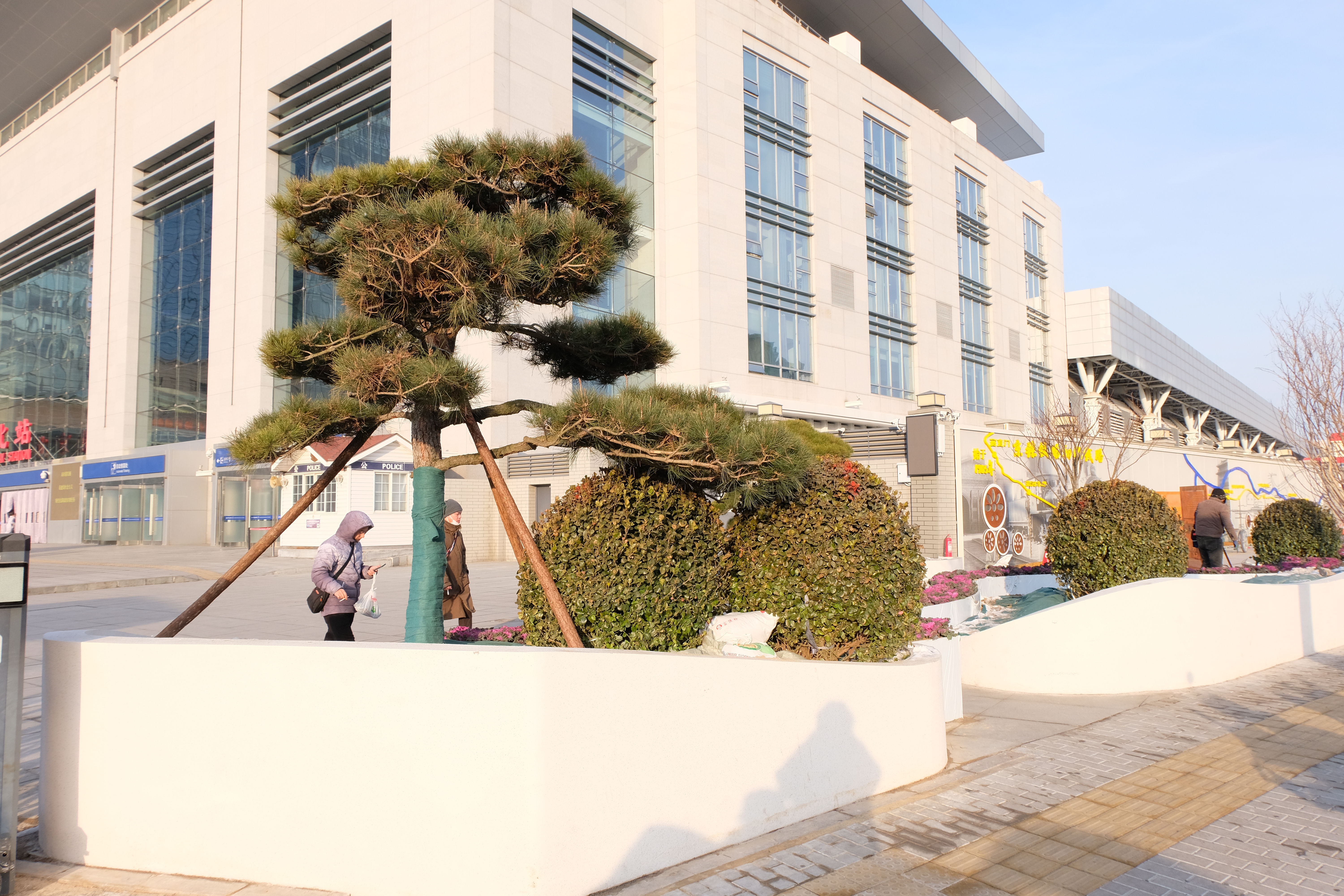 站前广场景观也上新了。最引人注目的便是落客区与广场衔接处的口袋公园,3个树池里种满红枫、紫薇、卫矛球等绿植,两棵迎客松仿佛与来往行人招手示意。据介绍,这里过去只是光秃秃的广场,外围是铁艺围栏和矮墙,仅作为内部通行使用。拆除后,增加了出入口,打破了边界,来往的旅客不仅方便穿行,还可以坐在花箱旁的座椅上休息。