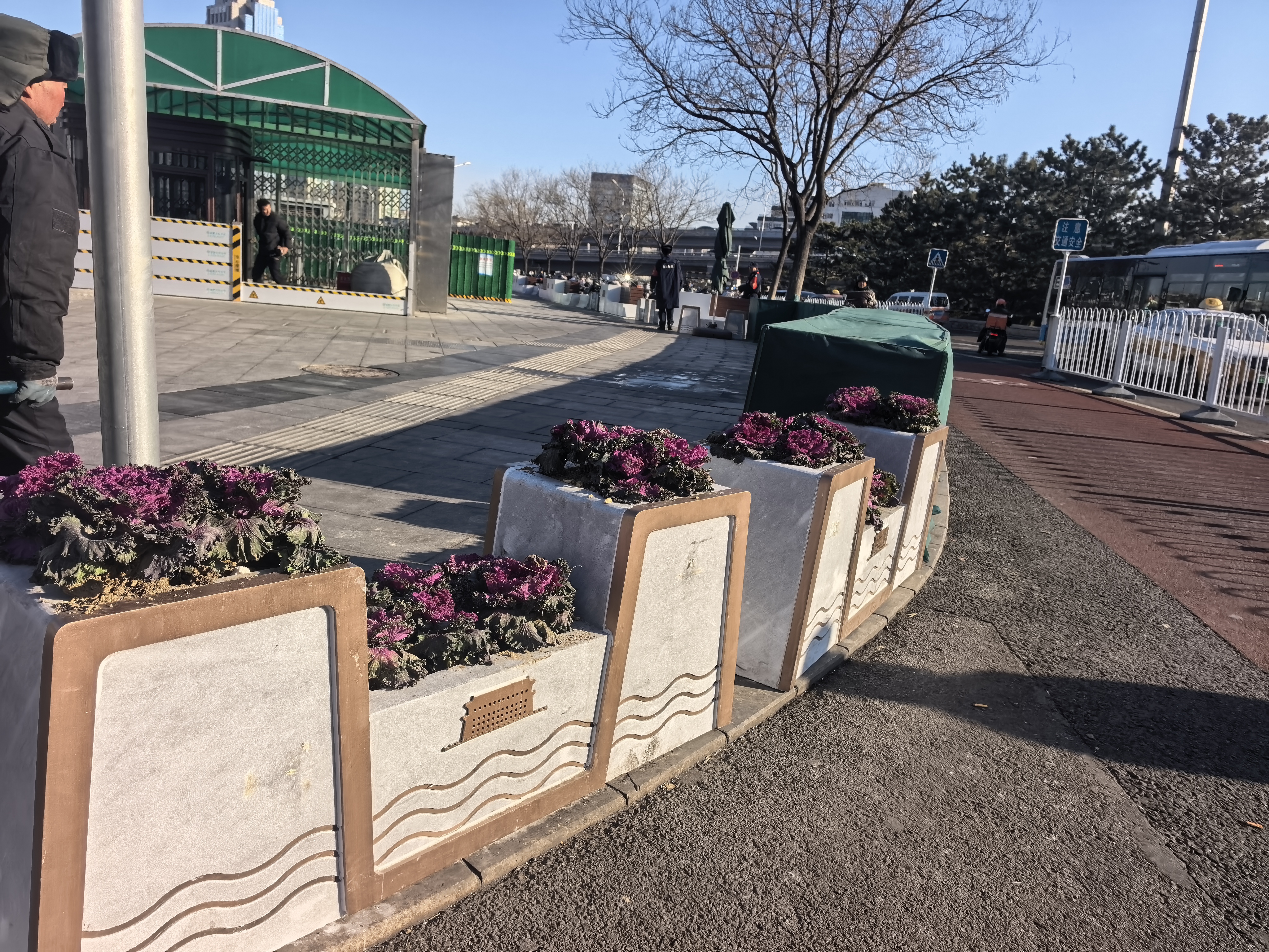 “你看这些花箱,上面刻的不是普通花纹,仔细看是西直门的老城墙和水门的图案。”一位在落客区引导车辆的工作人员告诉记者,“很多旅客等车时会凑近看,挺有意思的,给这现代化的车站添了不少老北京的味道。”