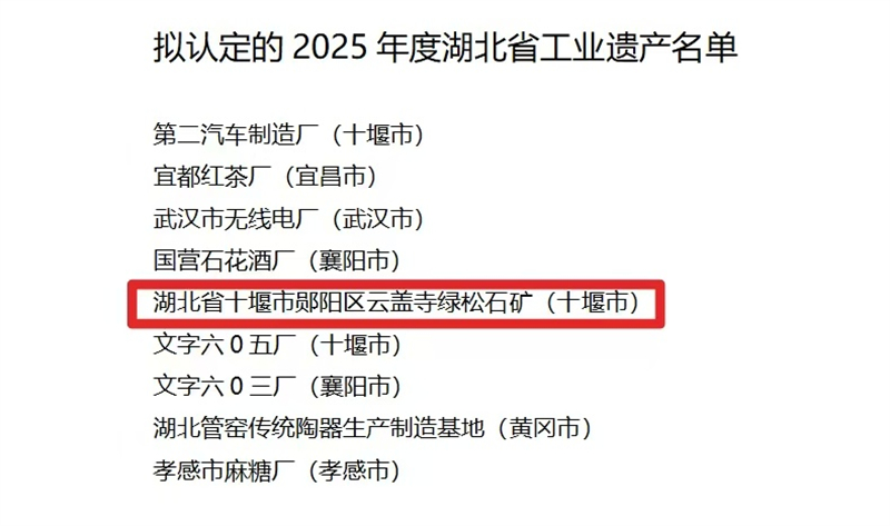 近日,湖北省经济和信息化厅正式公示了2025年度湖北省工业遗产名单,京堰研学点郧阳区云盖寺绿松石矿成功入选。