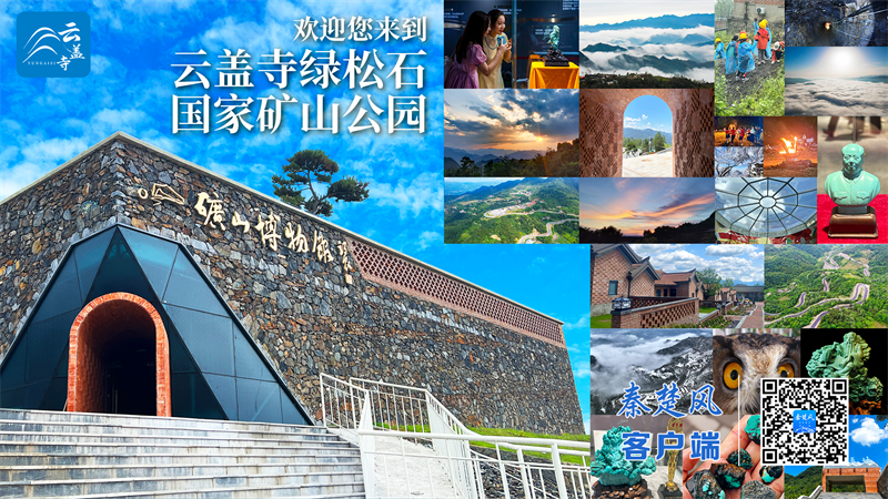 如今,云盖寺绿松石矿山已转型为集工业遗产展示、生态旅游与文化体验于一体的矿山公园。园区在保护原有矿脉与地貌的基础上,配套建设博物馆、文创中心、游客服务中心及民宿山房等,让游客在沉浸式体验中,感受绿松石开采的历史脉络与工艺精神,理解工业遗产在当代的文化价值与生命力。