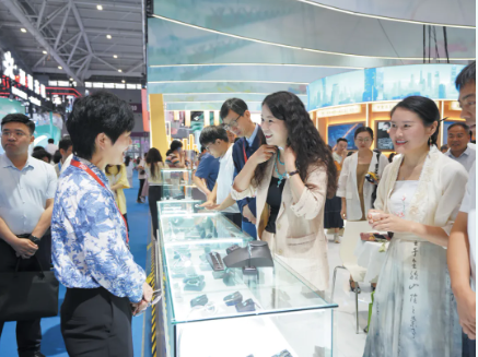 近年来,十堰绿松石产品不仅进驻国内一线城市高端商场,更作为“国礼”亮相中法文化年、中非经贸博览会等国际舞台。从2022年北京冬奥会“现象级”特许商品,到2025年深圳文博会惊艳全场的“楚国礼物”,十堰绿松石的文化价值与品牌形象被持续擦亮。