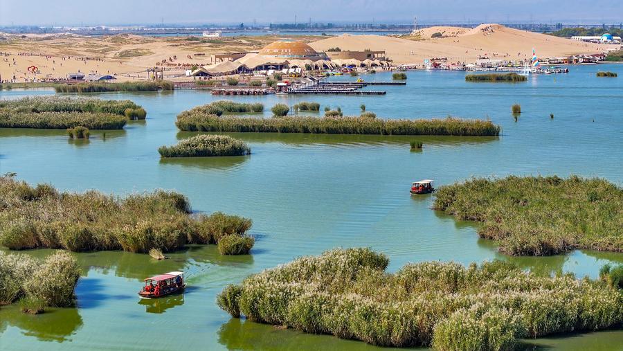 宁夏石嘴山市沙湖景区。新华社记者 冯开华 摄
