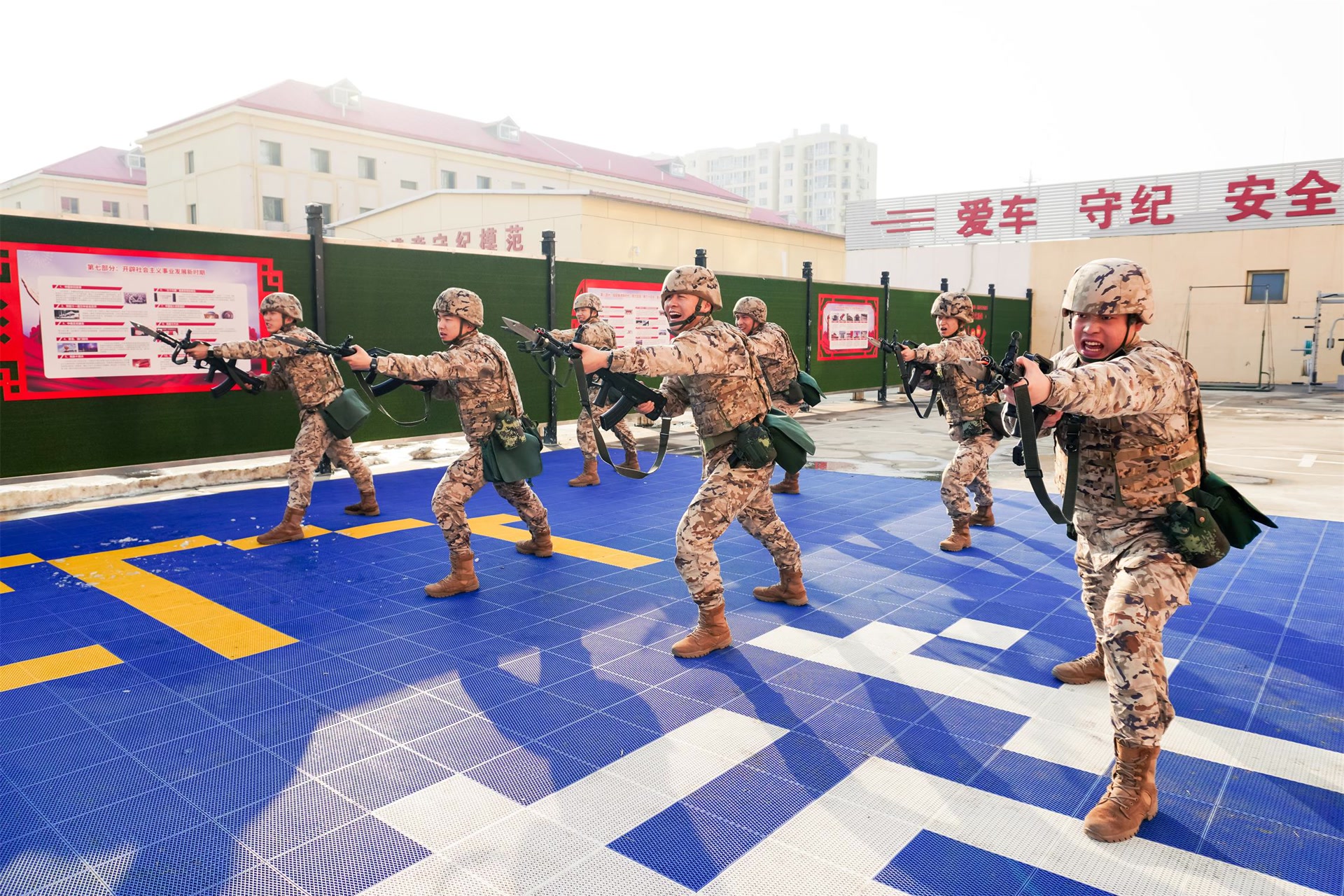“打仗需要什么就学什么,敌人害怕什么就苦练什么!”支队把学习贯彻全会精神与实战化训练深度融合,全体官兵紧盯实战需求,从难从严开展擒敌、刺杀等课目训练,以“真难实严”为标准,将战斗力标准落到基层、强到基层,持续掀起冬季大练兵热潮,在不断锤炼打磨中提升克敌制胜的过硬本领。在警勤中队的课堂上,官兵们将学习热情转化为创新动力,针对当前严寒环境下执勤安保等难点险点,开展“金点子”征集活动,让官兵在探索中进行思想交锋和集思广益,切实确保执勤工作的绝对安全。