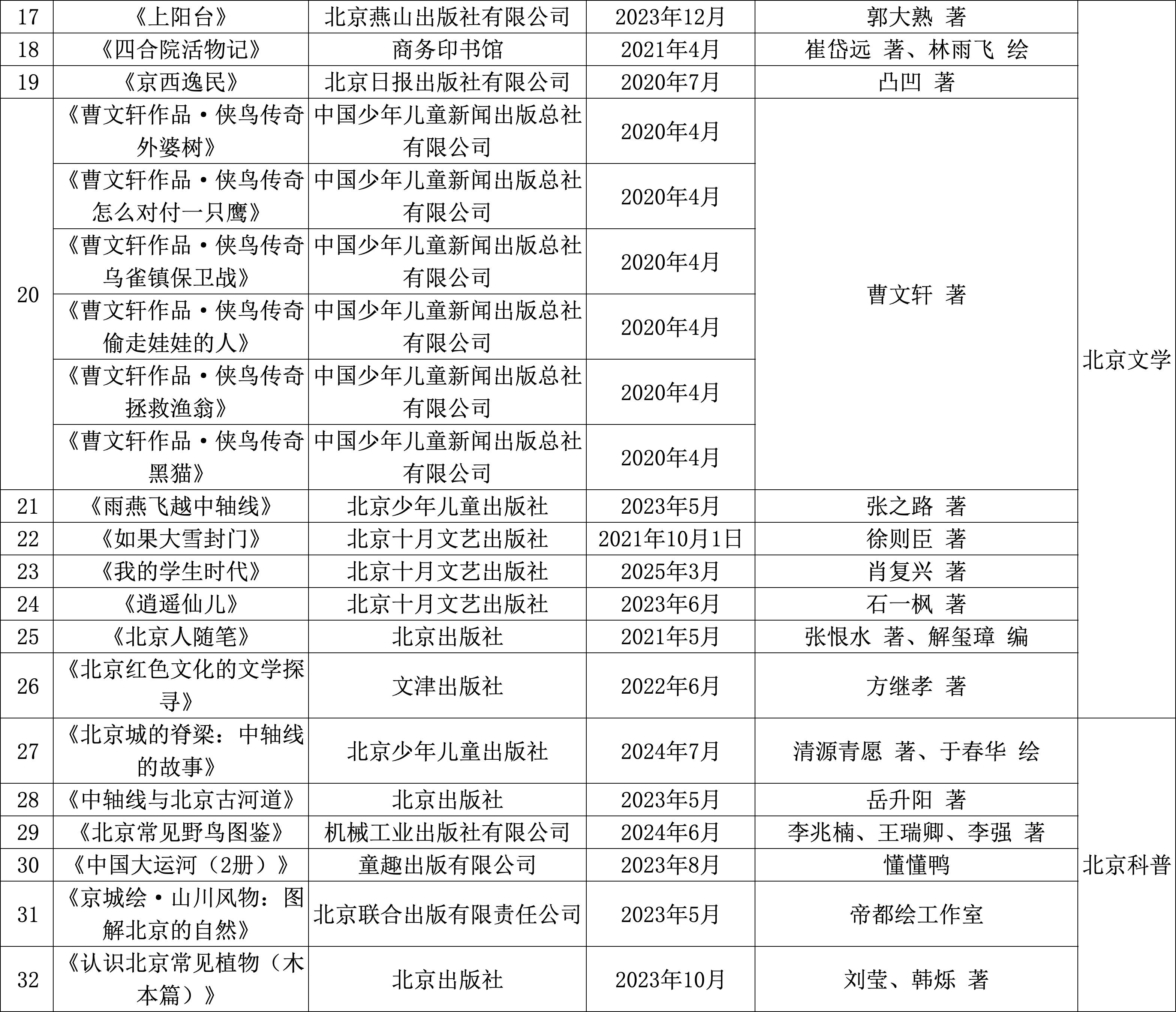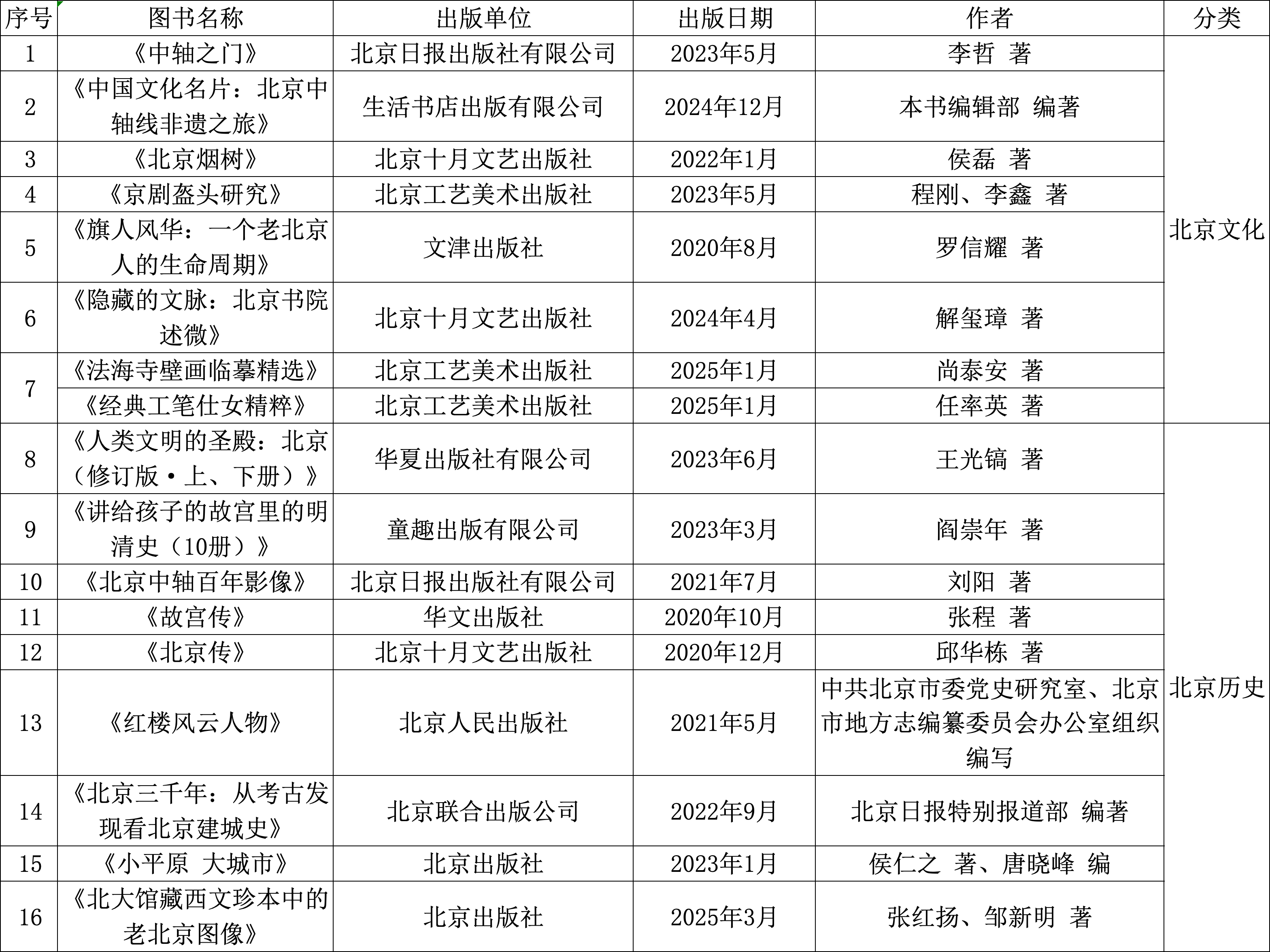 2025阅读北京,京彩书香——“书香京华”数字阅读平台主题推荐书目结果(排名不分先后)