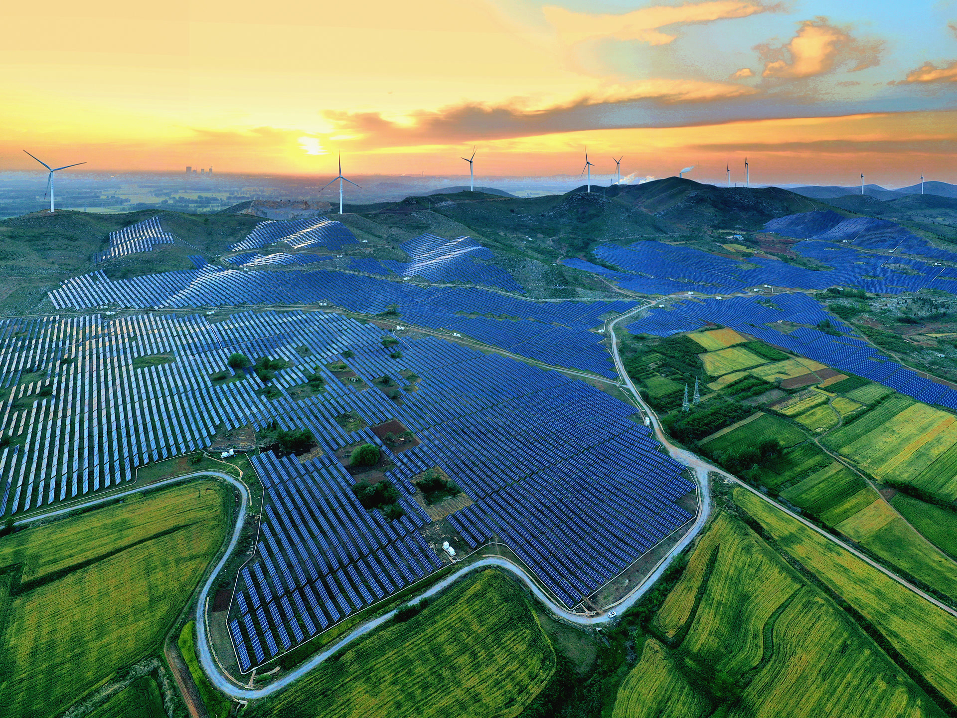 中国是在发展风能和太阳能方面特别突出的国家,如今已主导全球可再生能源技术的生产,包括全球80%的太阳能电池、70%的风力涡轮机和70%的锂电池,而且物美价廉。随着产量激增、价格下降,市场需求也随之迅猛增长,形成了良性循环,使可再生能源发展成一个目前占中国经济比重超过10%的产业。与此同时,风能和太阳能也成为世界大部分地区最便宜的能源。中国的太阳能发电量在过去10年增长了20多倍,太阳能和风力发电场的总装机容量足以供整个美国使用。
