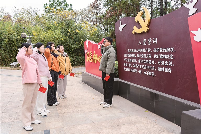 12月2日,江苏省南京市溧水区纪委监委组织部分青年党员干部进行党章学习。图为青年党员干部在重温入党誓词。刘胜君 摄