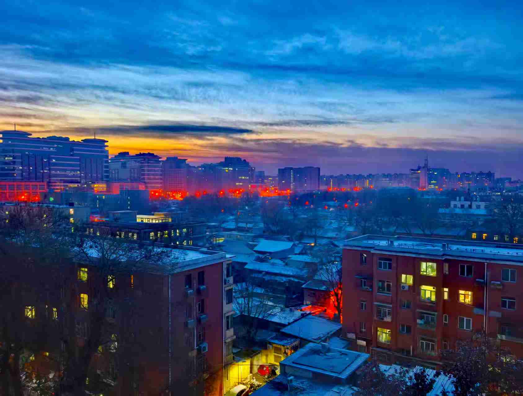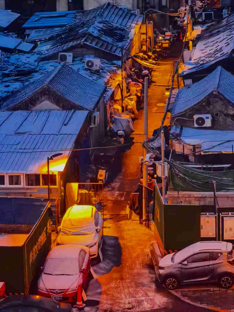 京城拍客今日精选|雪染晨曦映京城 一痕凝霜覆屋檐