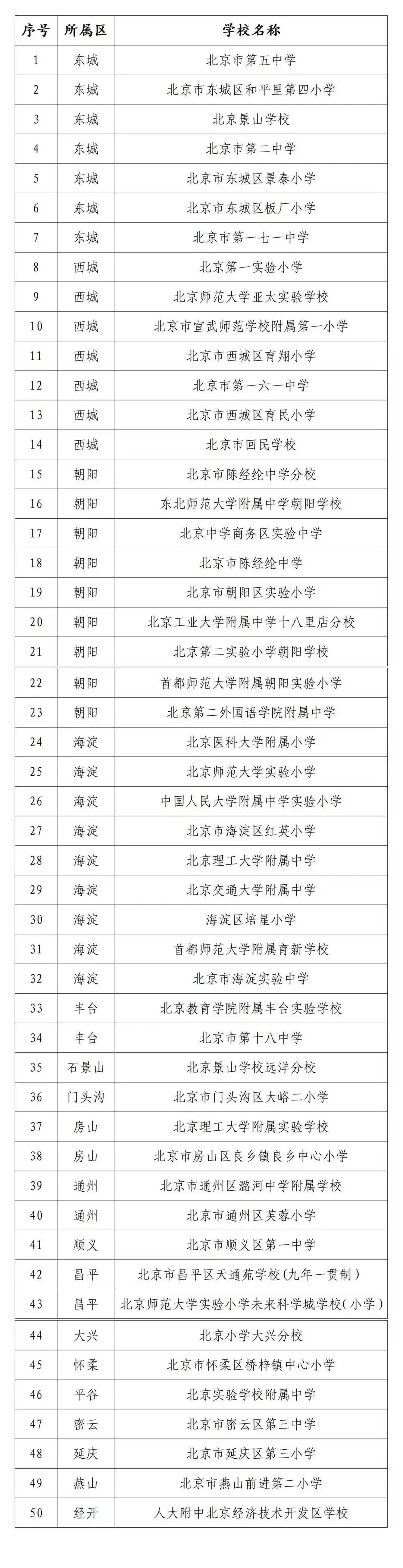 北京50所学校拟入选