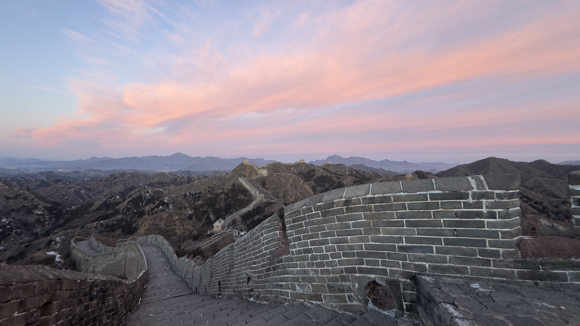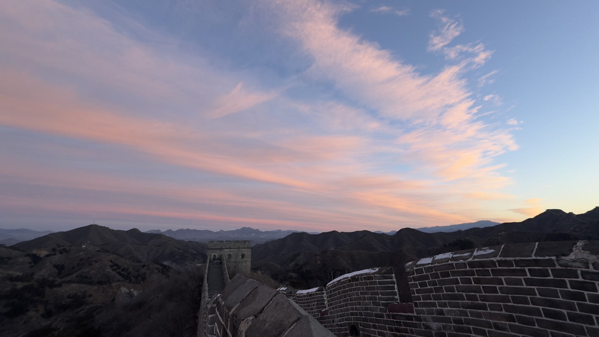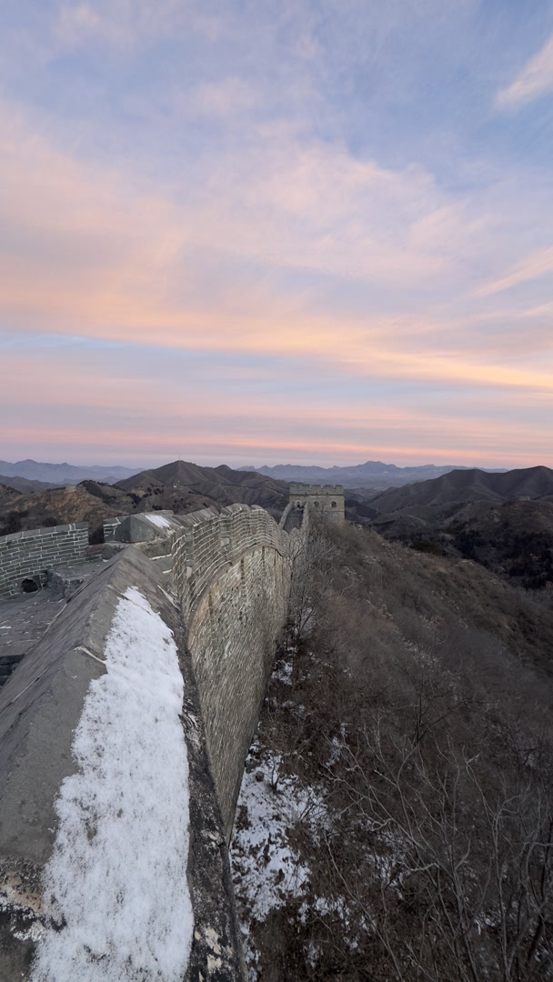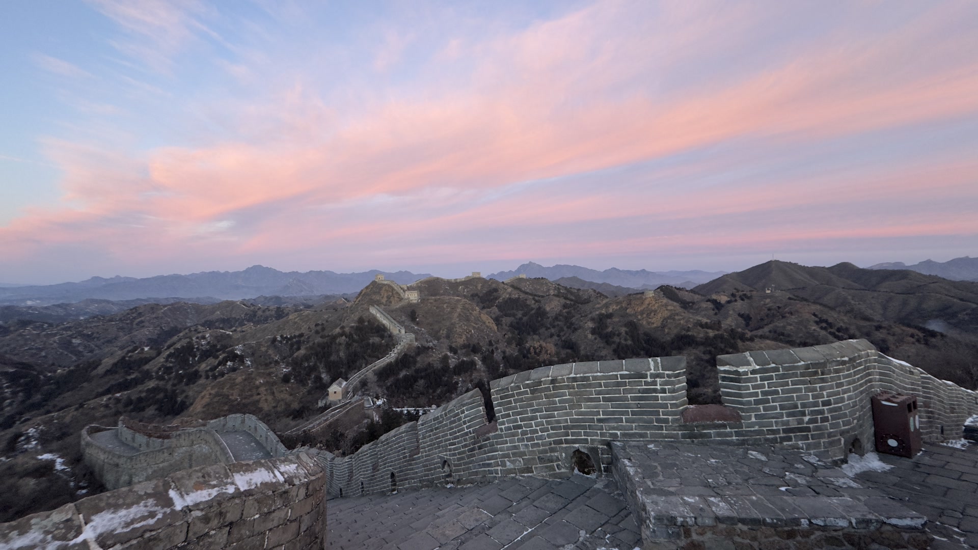 河北滦平:雪后清晨,金山岭长城朝霞绚烂夺目