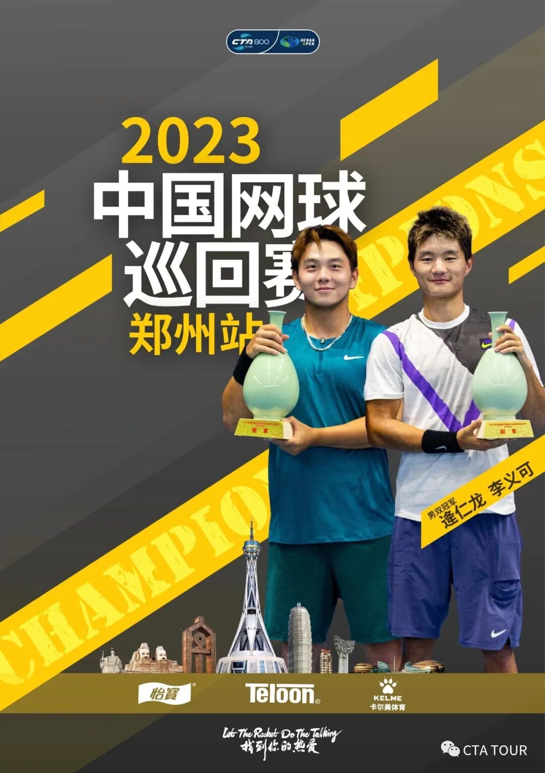 2023年,逄仁龙与队友获中国网球巡回赛河南网球公开赛男双冠军。图:公众号 河南省体育场馆中心