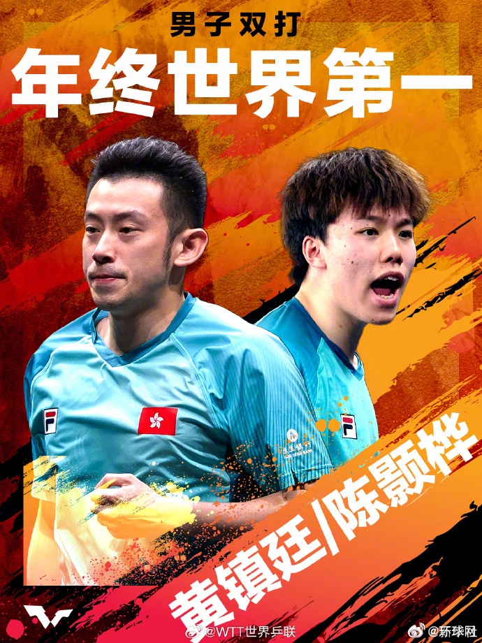 男子双打年终世界第一:黄镇廷/陈颢桦