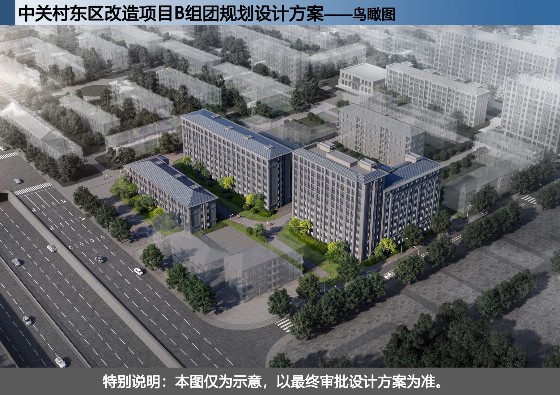“改造遵循‘户数不增加、适度改善、统一规划、分步实施、各方出资、家园共建’基本原则,聚焦排除安全隐患、改善居住条件、完善配套设施、提升城市品质核心目标,切实增强群众的获得感、幸福感、安全感。”海淀区住房和城乡建设委员会副主任、中关村东区改造现场指挥部常务副指挥佀传鑫介绍,B组团改造范围内涉及建筑面积约2.27万平方米,其中住宅楼5栋247户,分别是1号楼、2号楼、19号楼、28号楼、器材小楼,共有中国科学院行管局和北京大学2家产权单位、38家分配使用单位,全部为承租公房。非宅现状建筑规模合计约1.52万平方米,包括18号楼、29号楼、过程所库房、化学所宿舍、中科一招、科苑公寓、绿化小楼、中关村北一街13号等公建,部分建筑承载着区域发展的特殊历史记忆。