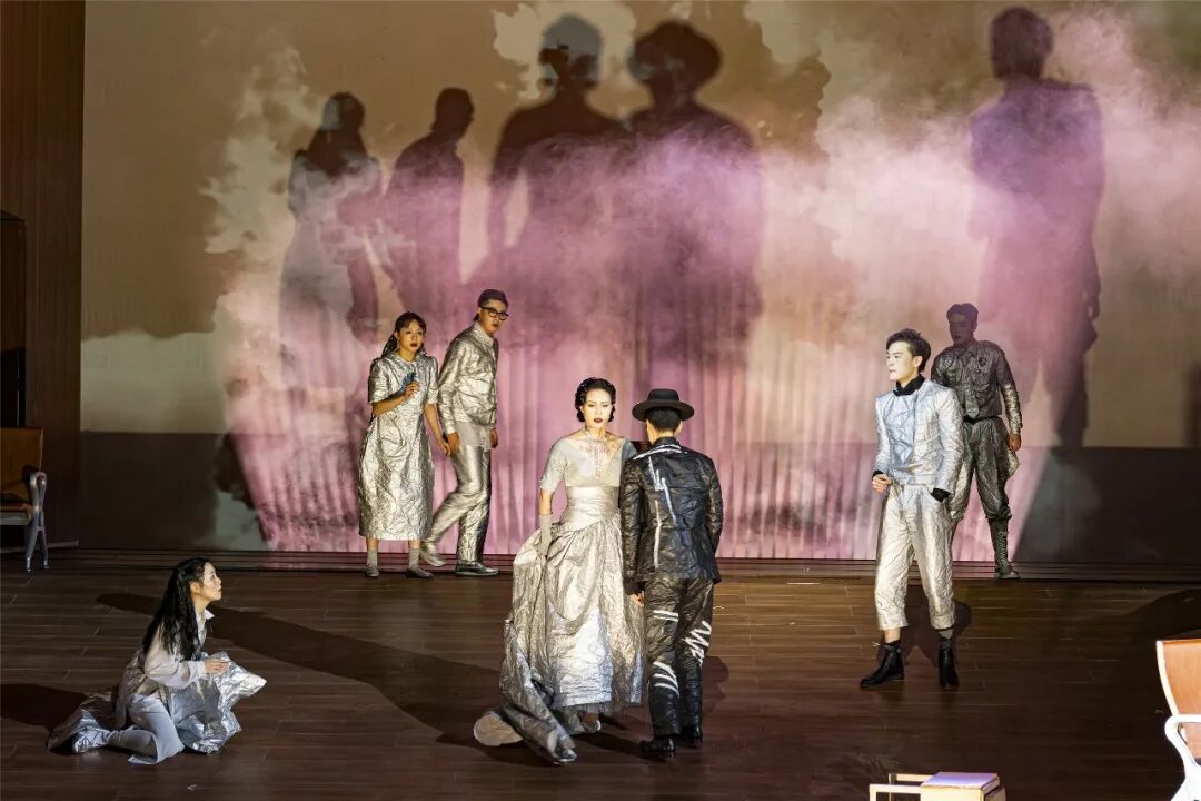 “表演契诃夫戏剧唯一的原则就是不能把它给‘演’出来,我们也希望在舞台上找到这种靠近生活的表演方式与属于话剧的独特表达语言。”围绕着导演的创作意图,中格两国创作者共同合作,让舞台语汇丰富而不繁冗,多种元素的有机结合让全剧的叙事流畅有序,原著的表达也因此显得生动有趣,让观众沉浸其中。